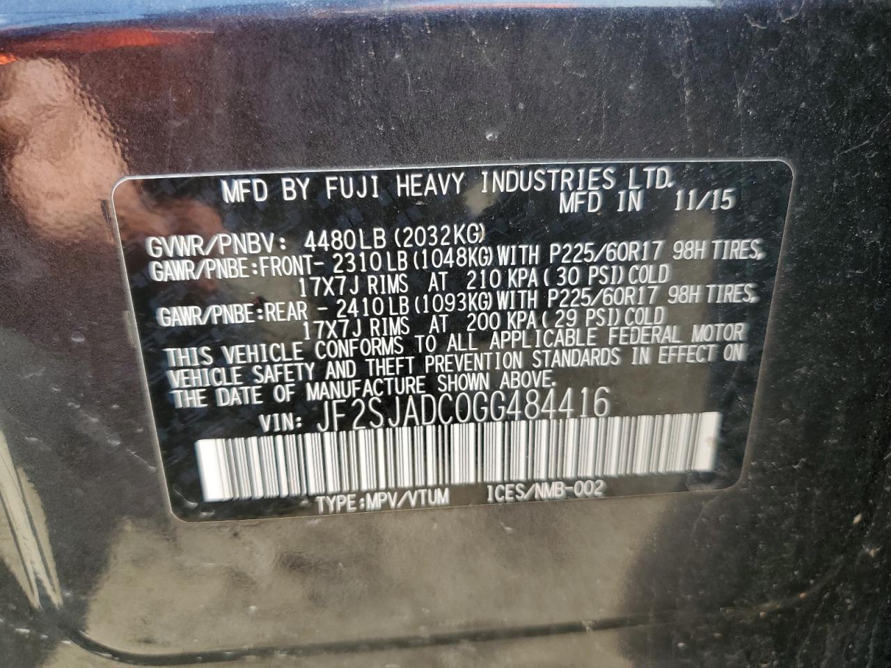 2016 SUBARU FORESTER - JF2SJADC0GG484416, цвет - Древесный уголь, 2.5, Бензин, Полный привод из США