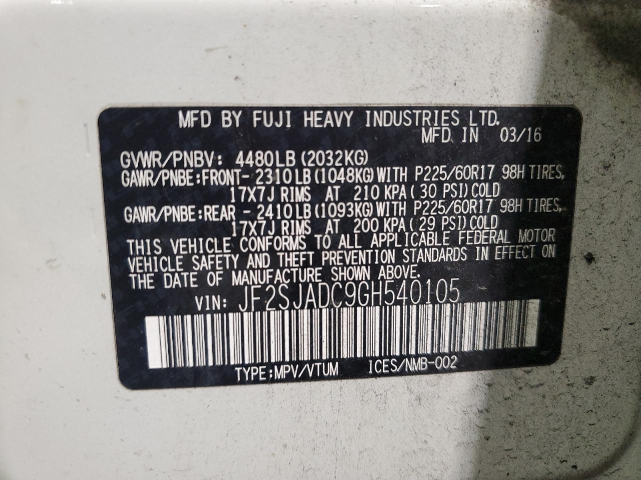 Цвет БелыйЦилиндры 4Привод Полный приводVIN JF2SJADC9GH540105Состояние Заводится и едет (проверено)Повреждения Передняя или задняяДата аукциона 2025-10-08