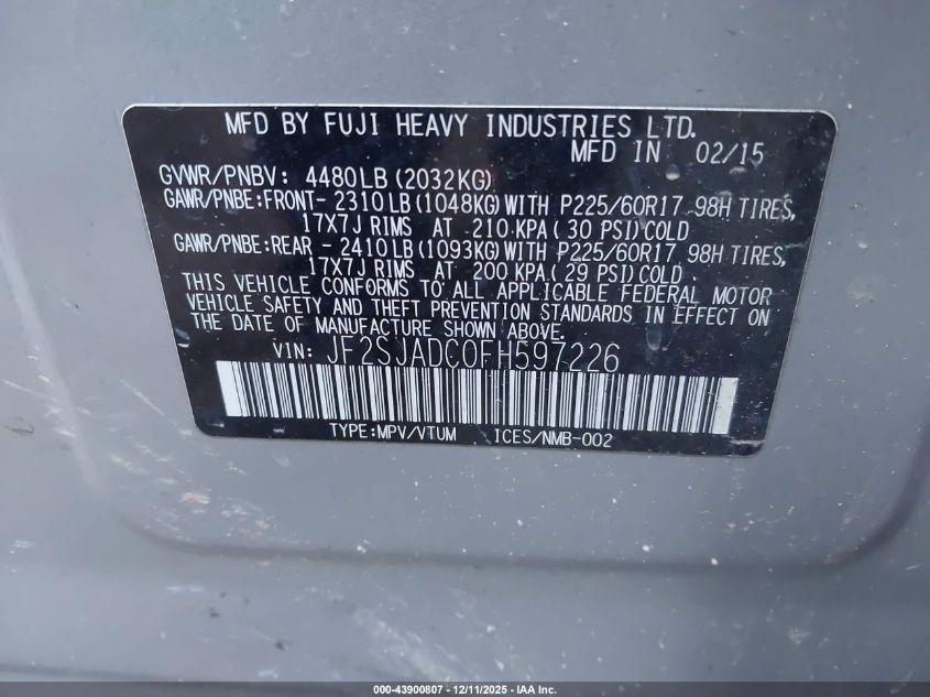 2015 SUBARU FORESTER 2.5I PREMIUM