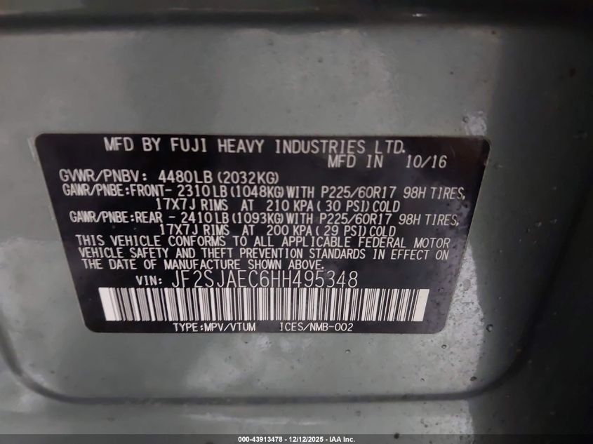 Цвет СерыйЦилиндры 4Привод Полный приводVIN JF2SJAEC6HH495348Состояние Заводится и едет (проверено)Повреждения По бокам