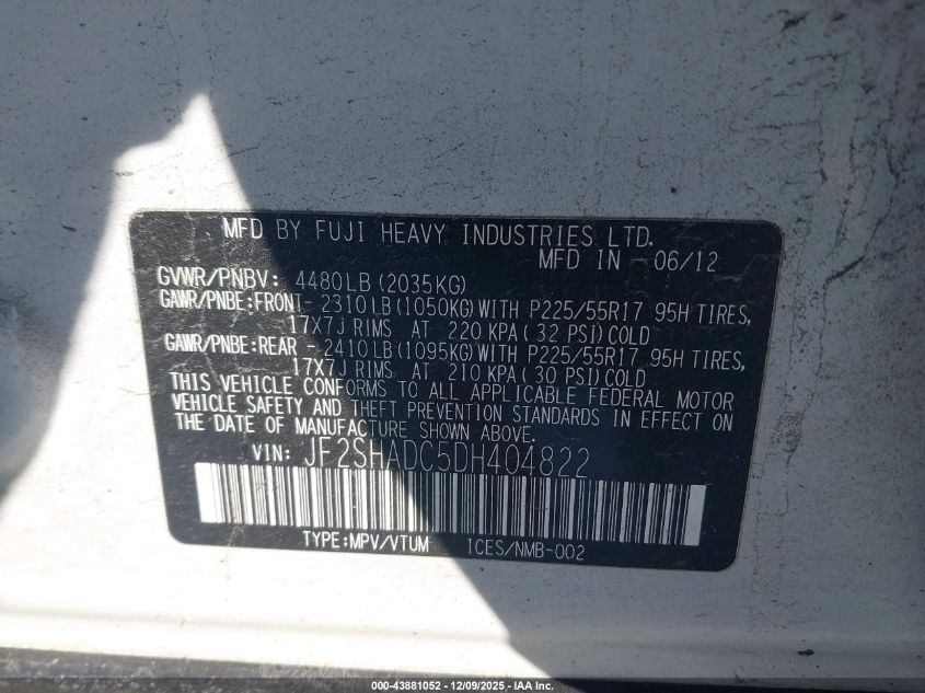 Цвет БелыйЦилиндры 4Привод Полный приводVIN JF2SHADC5DH404822Состояние Заводится и едет (проверено)Повреждения Обычный износ