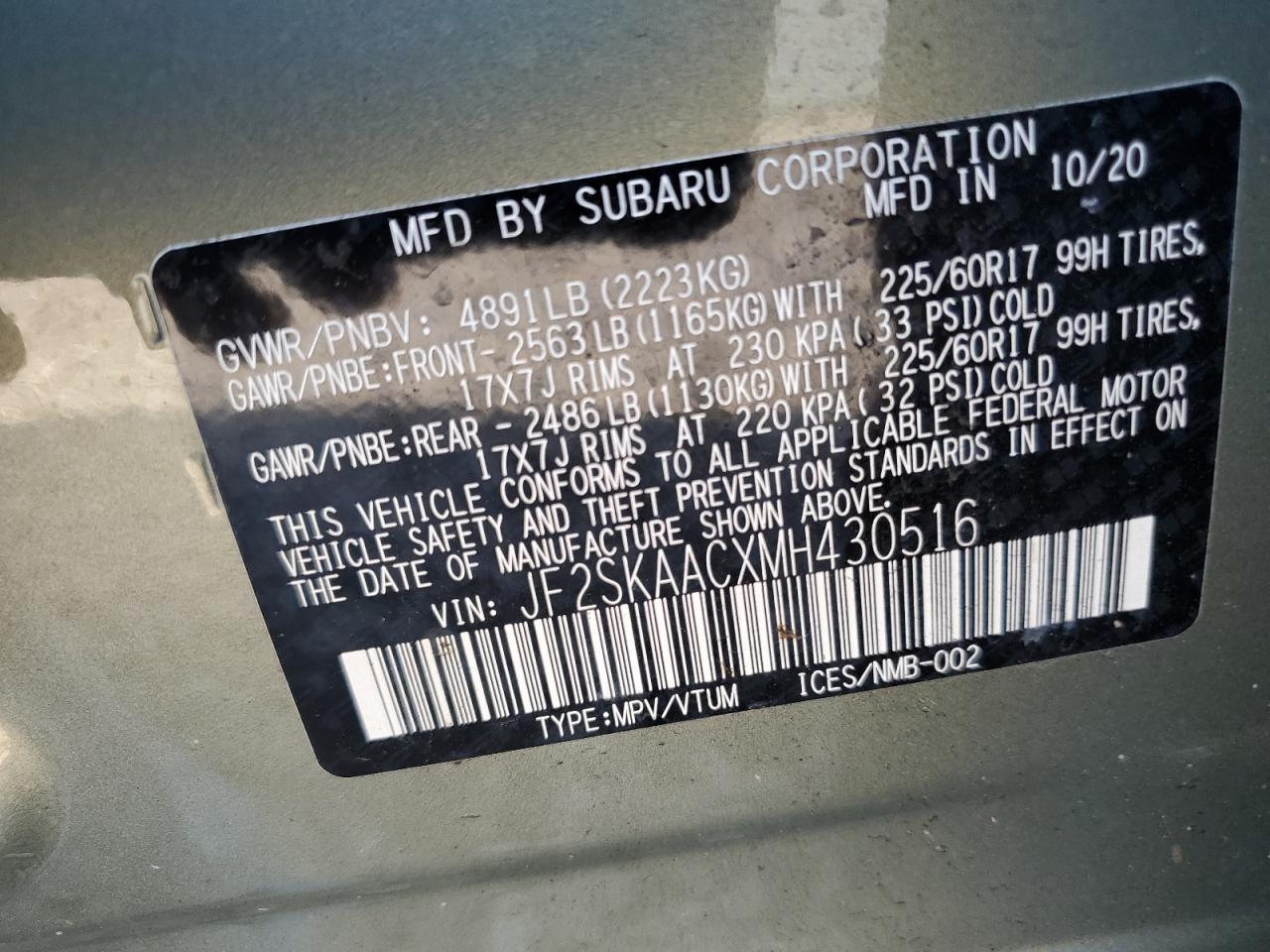 2021 SUBARU FORESTER - JF2SKAACXMH430516, цвет - Зеленый, 2.5, Бензин, Полный привод из США