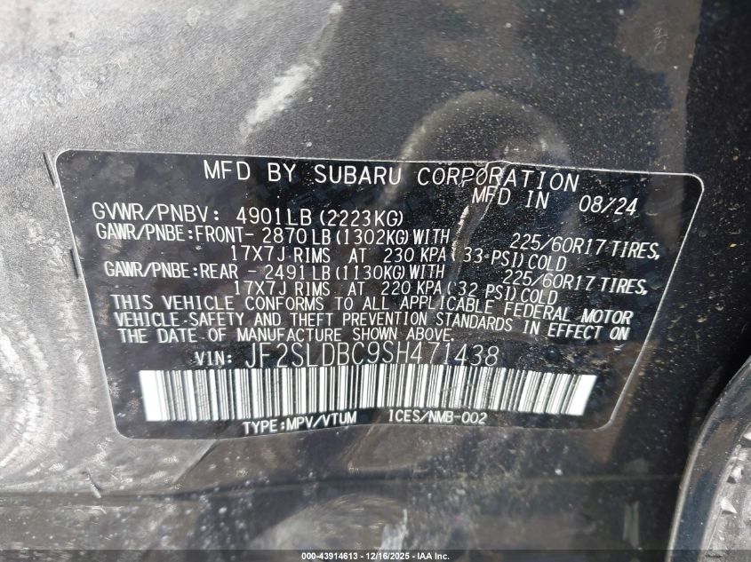 2025 SUBARU FORESTER - JF2SLDBC9SH471438, цвет - Серый, 2.5, Бензин, Полный привод из США