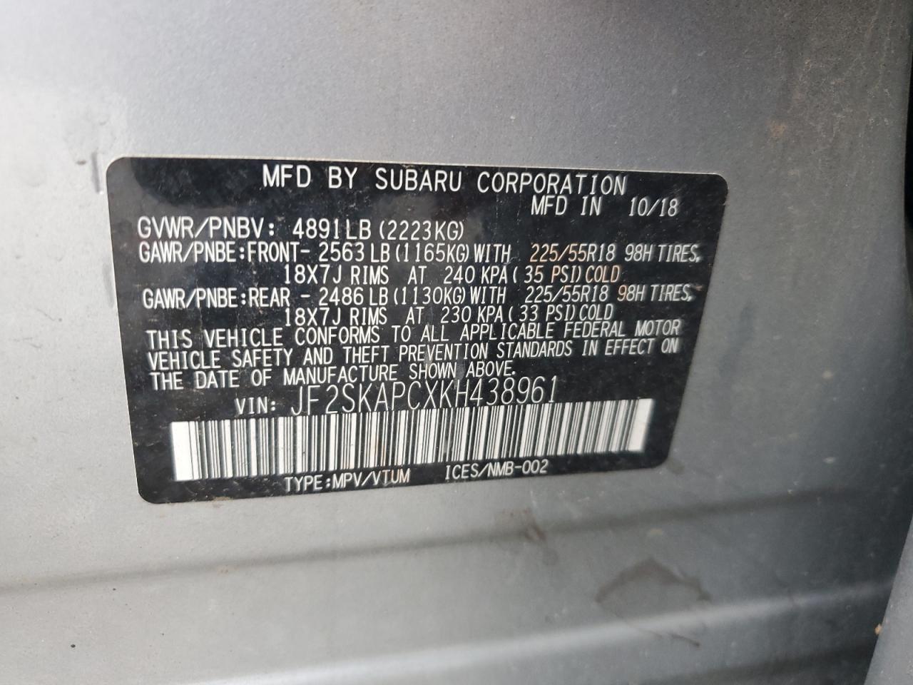 2019 SUBARU FORESTER - JF2SKAPCXKH438961, цвет - Серебряный, 2.5, Бензин, Полный привод из США