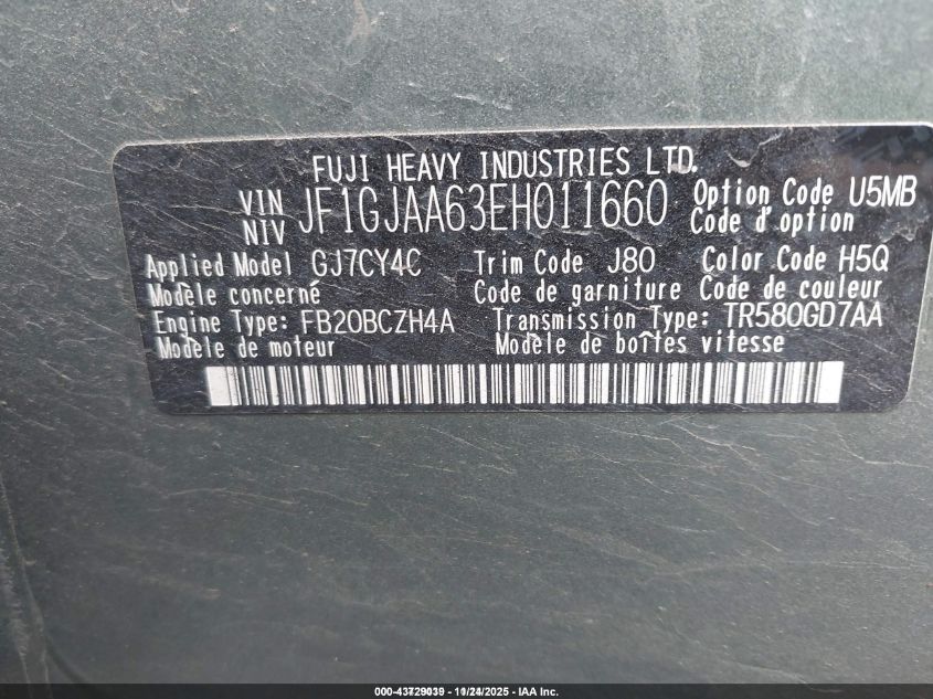 2014 SUBARU IMPREZA - JF1GJAA63EH011660, цвет - Зеленый, 2.0, Бензин, Полный привод из США