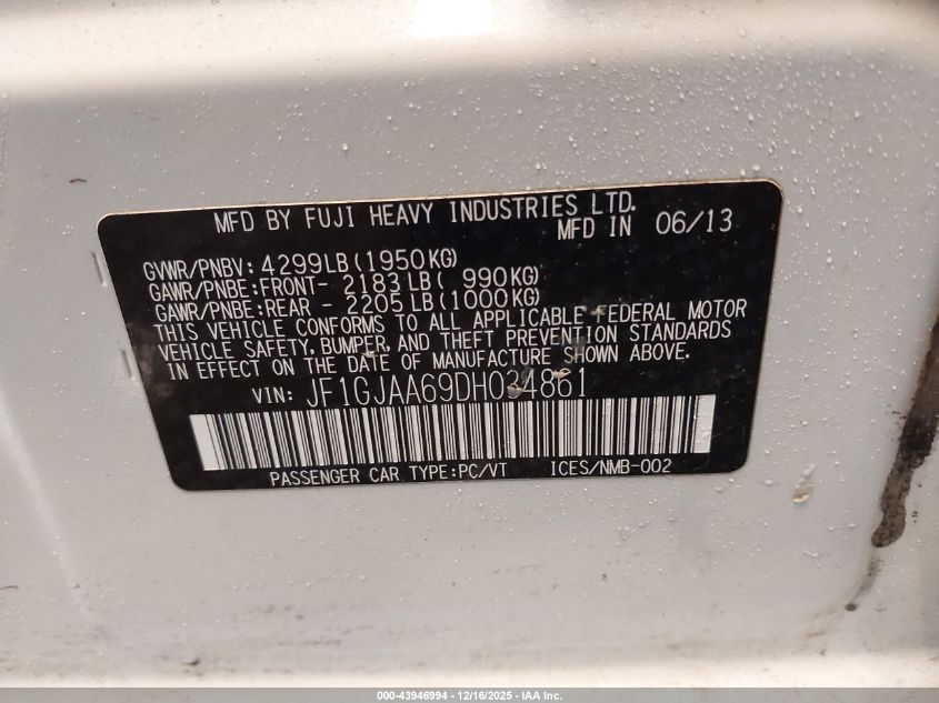 2013 SUBARU IMPREZA - JF1GJAA69DH034861, цвет - , 2.0, Бензин, Полный привод из США