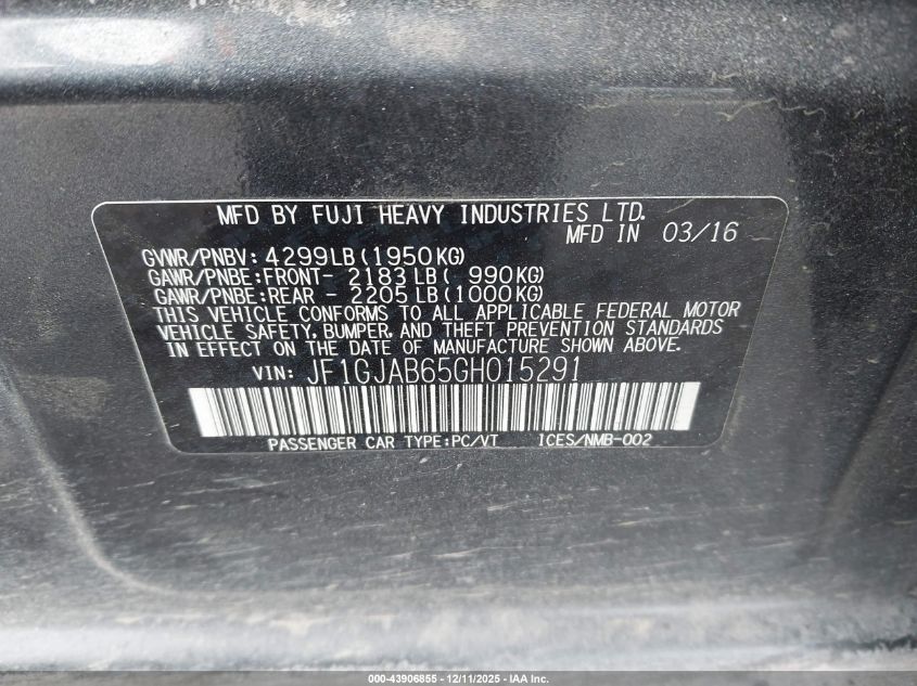 2016 SUBARU IMPREZA - JF1GJAB65GH015291, цвет - Серый, 2.0, Бензин, Полный привод из США