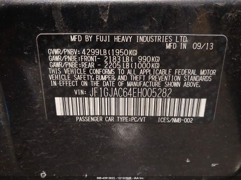 2014 SUBARU IMPREZA - JF1GJAC64EH005282, цвет - Черный, 2.0, Бензин, Полный привод из США