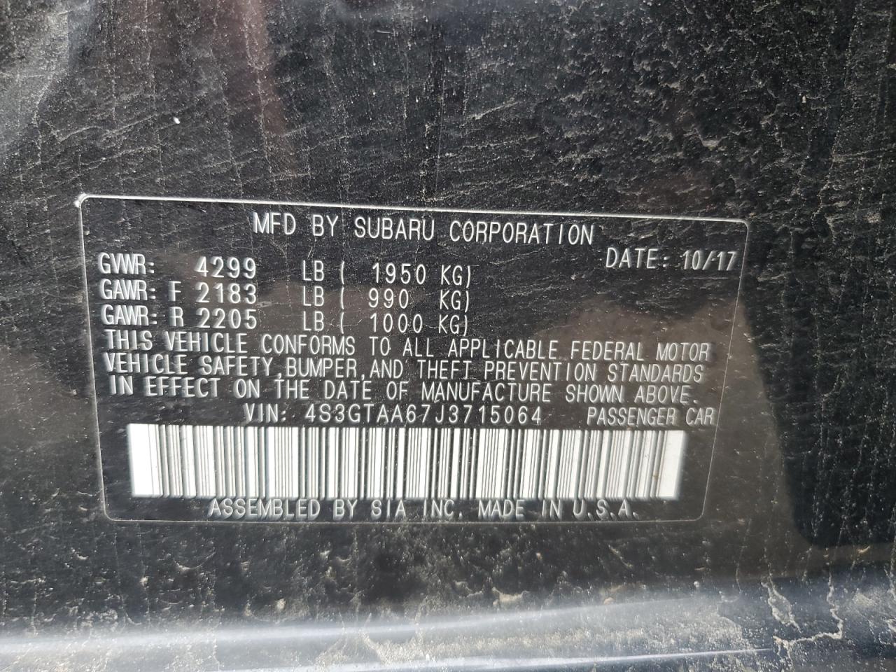 2018 SUBARU IMPREZA - 4S3GTAA67J3715064, цвет - Черный, 2.0, Бензин, Полный привод из США