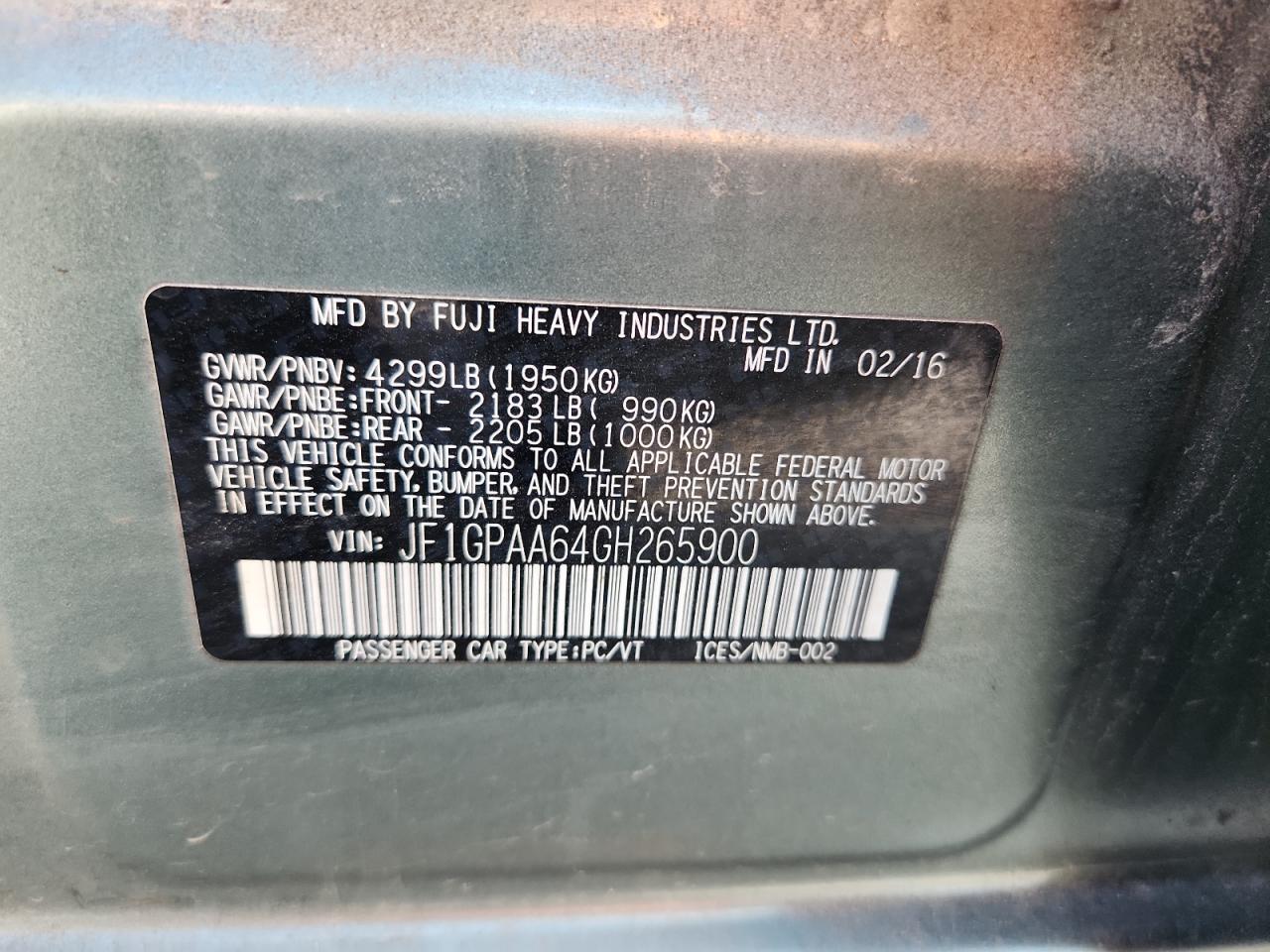 2016 SUBARU IMPREZA - JF1GPAA64GH265900, цвет - Зеленый, 2.0, Бензин, Полный привод из США