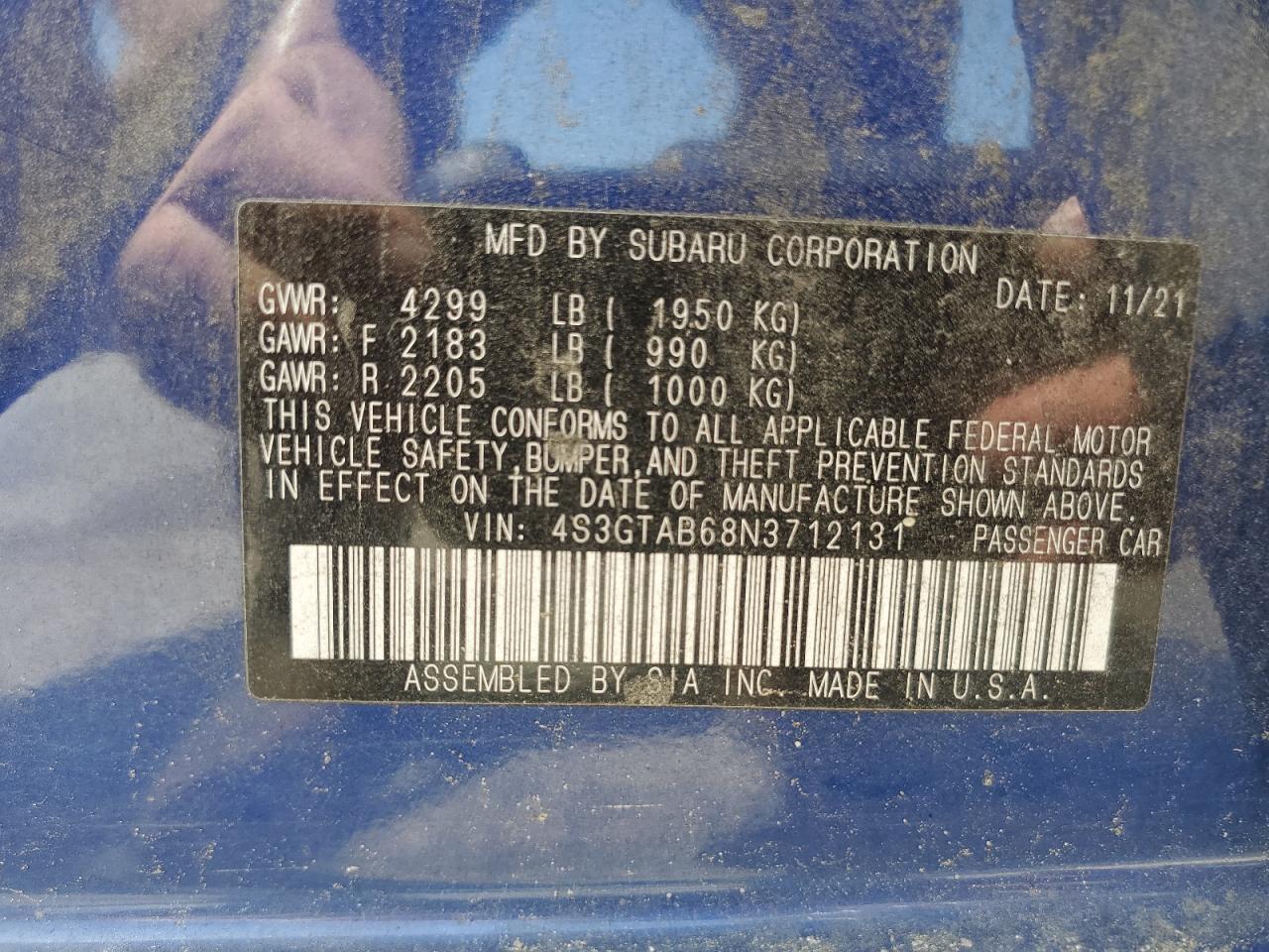 2022 SUBARU IMPREZA - 4S3GTAB68N3712131, цвет - Синий, 2.0, Бензин, Полный привод из США