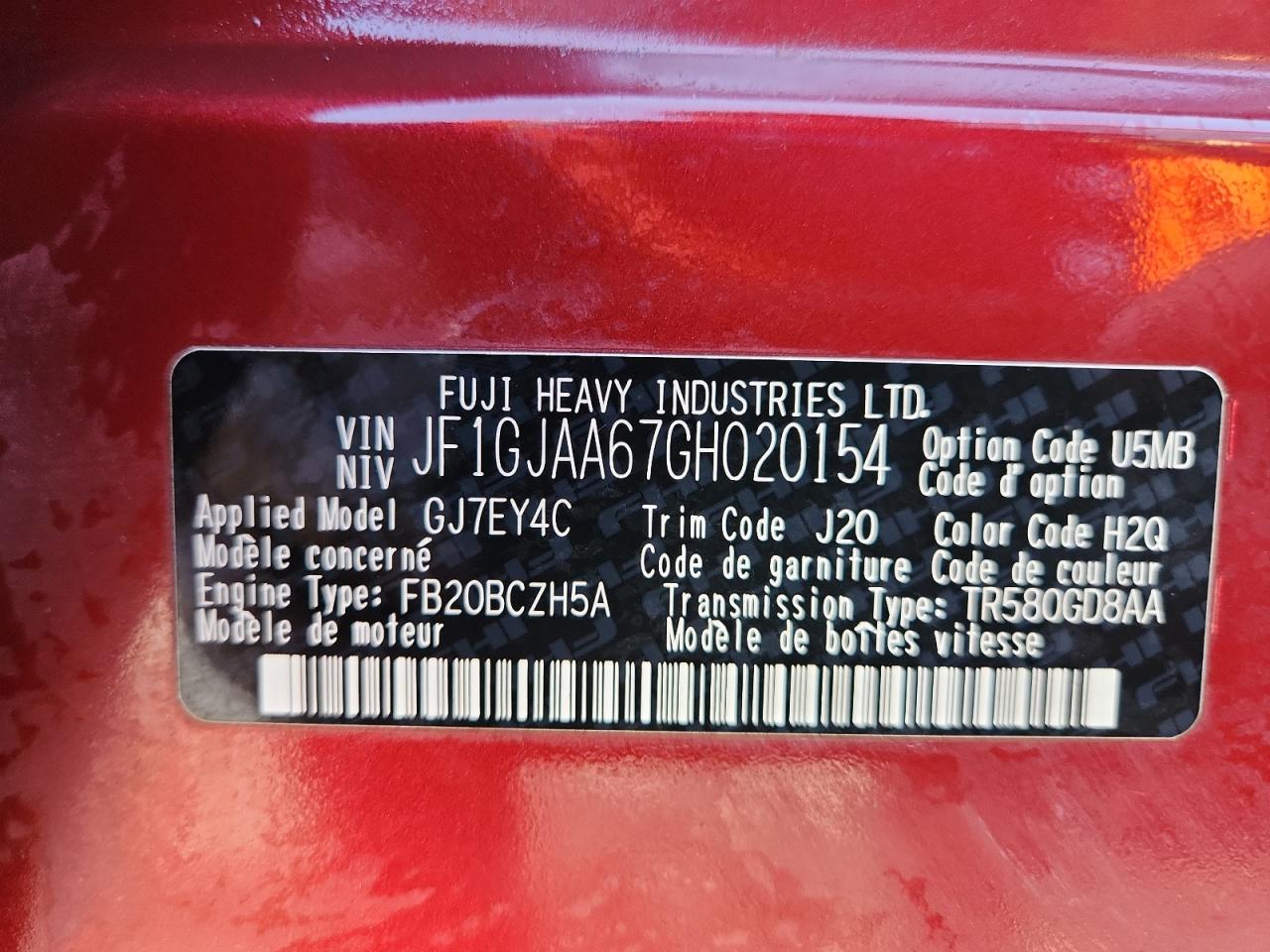 2016 SUBARU IMPREZA - JF1GJAA67GH020154, цвет - Бургундия, 2.0, Бензин, Полный привод из США