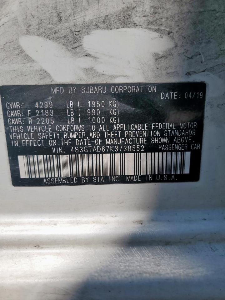 2019 SUBARU IMPREZA - 4S3GTAD67K3738552, цвет - Белый, 2.0, Бензин, Полный привод из США