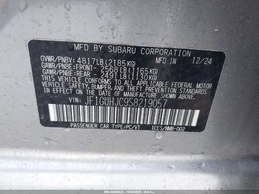 2025 SUBARU IMPREZA - JF1GUHJC9S8219057, цвет - Серебряный, 2.5, Бензин, Полный привод из США