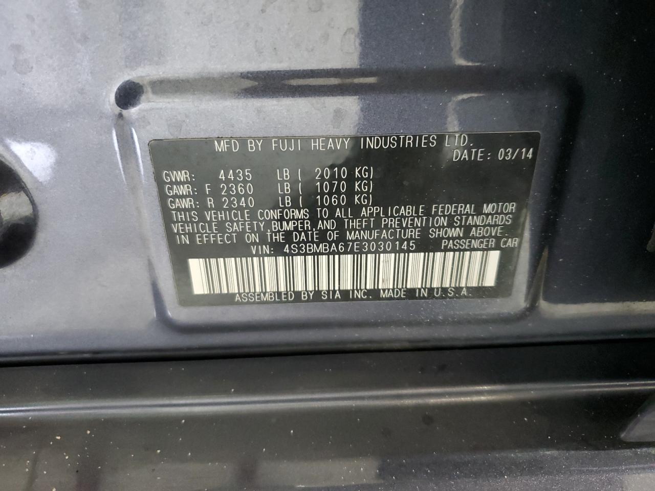 2014 SUBARU LEGACY - 4S3BMBA67E3030145, цвет - Древесный уголь, 2.5, Бензин, Полный привод из США