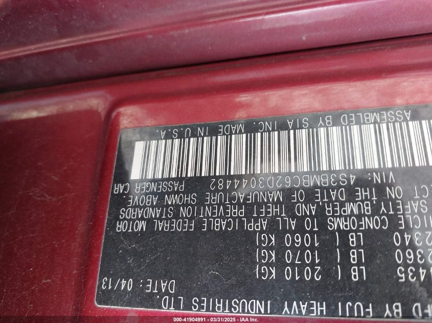 2013 SUBARU LEGACY - 4S3BMBC62D3044482, цвет - Бургундия, 2.5, Бензин, Полный привод из США