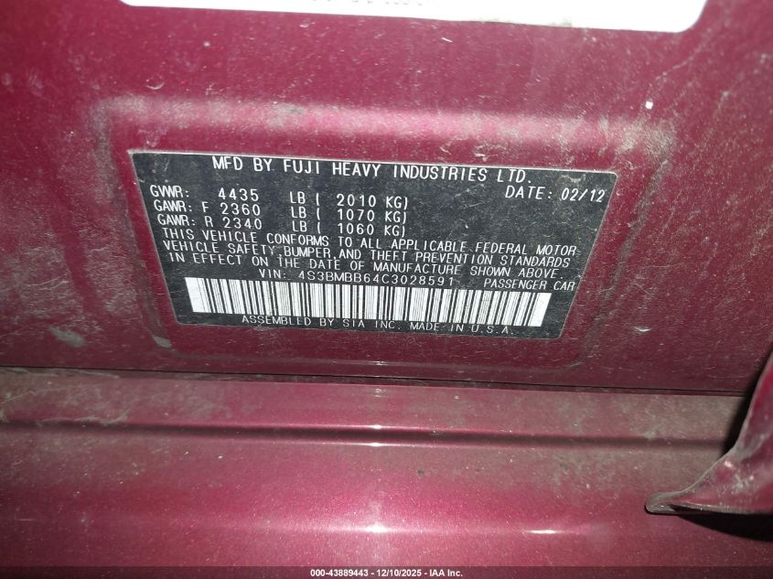 2012 SUBARU LEGACY 2.5I PREMIUM
