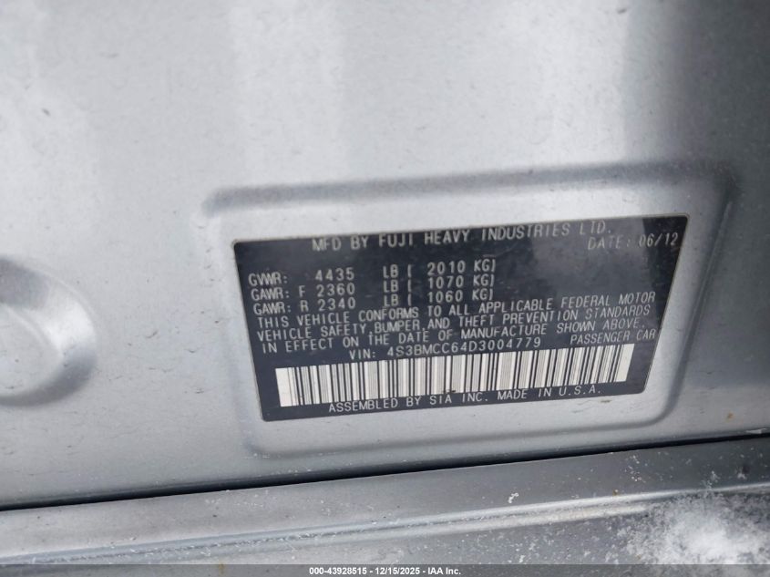 2013 SUBARU LEGACY 2.5I PREMIUM