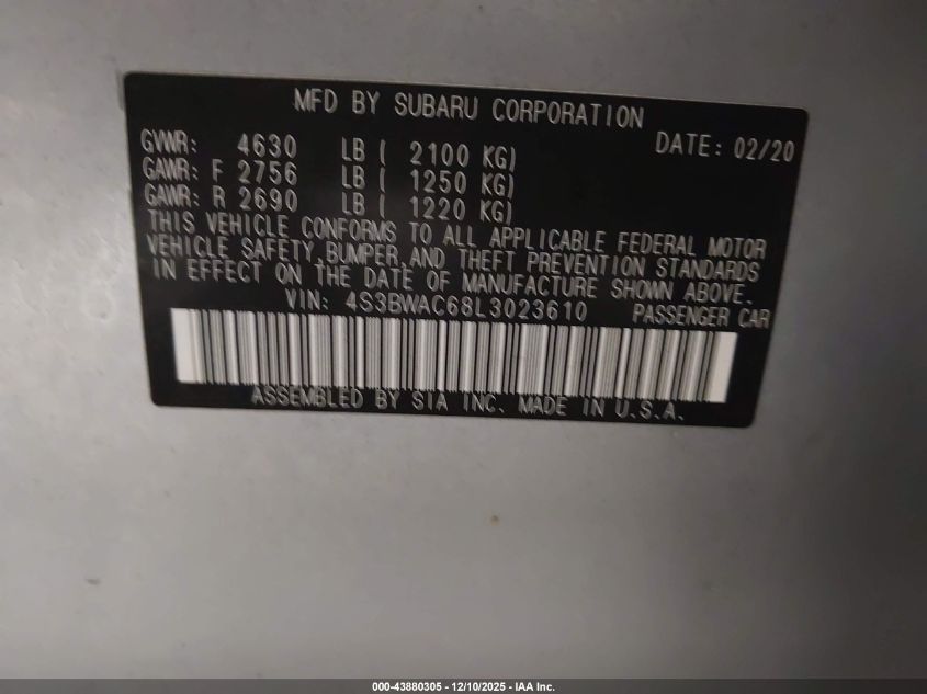 2020 SUBARU LEGACY - 4S3BWAC68L3023610, цвет - Серебряный, 2.5, Бензин, Полный привод из США