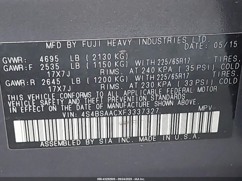 2015 SUBARU OUTBACK 2.5I LIMITED