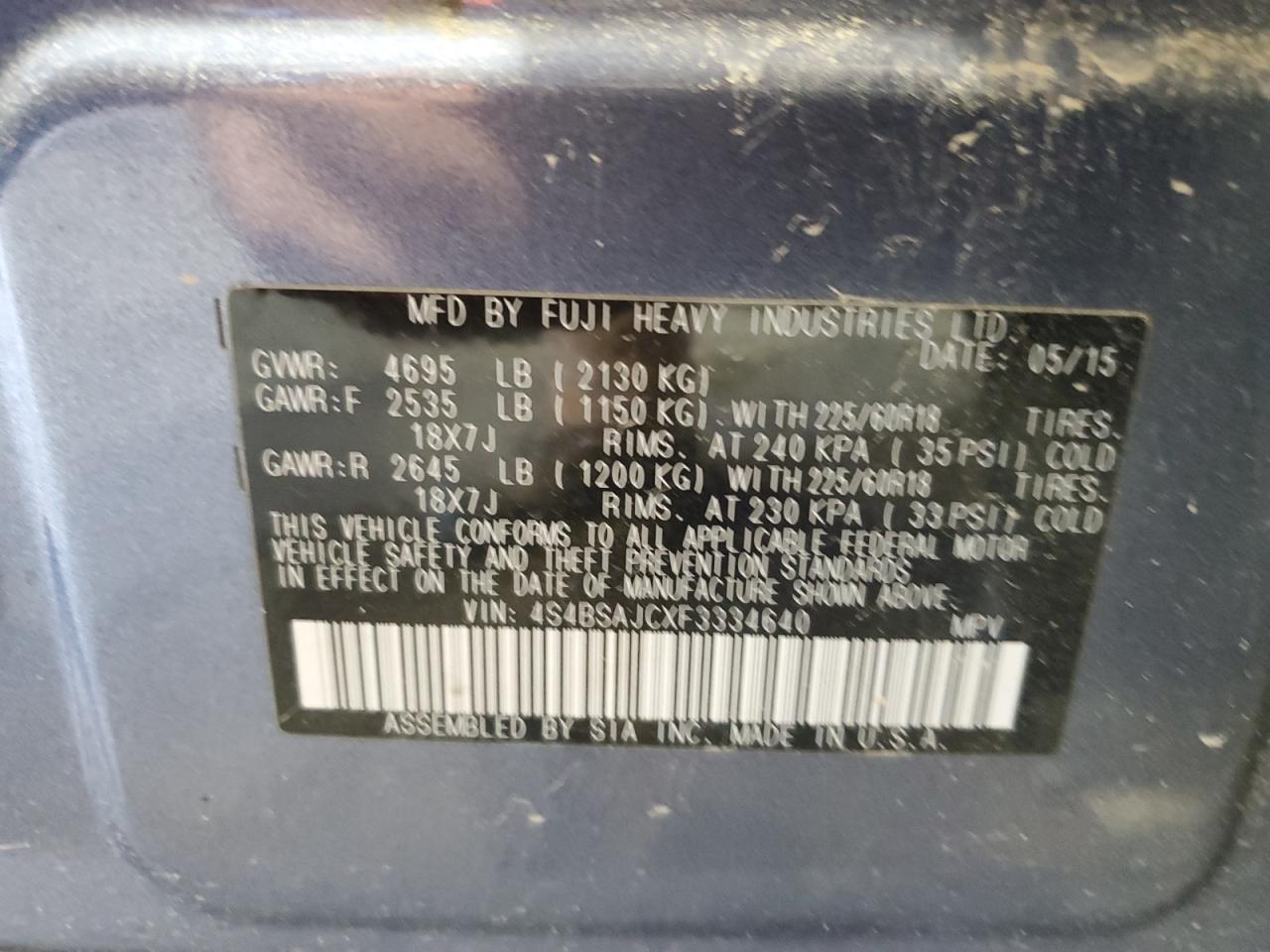 2015 SUBARU OUTBACK - 4S4BSAJCXF3334640, цвет - Синий, 2.5, Бензин, Полный привод из США