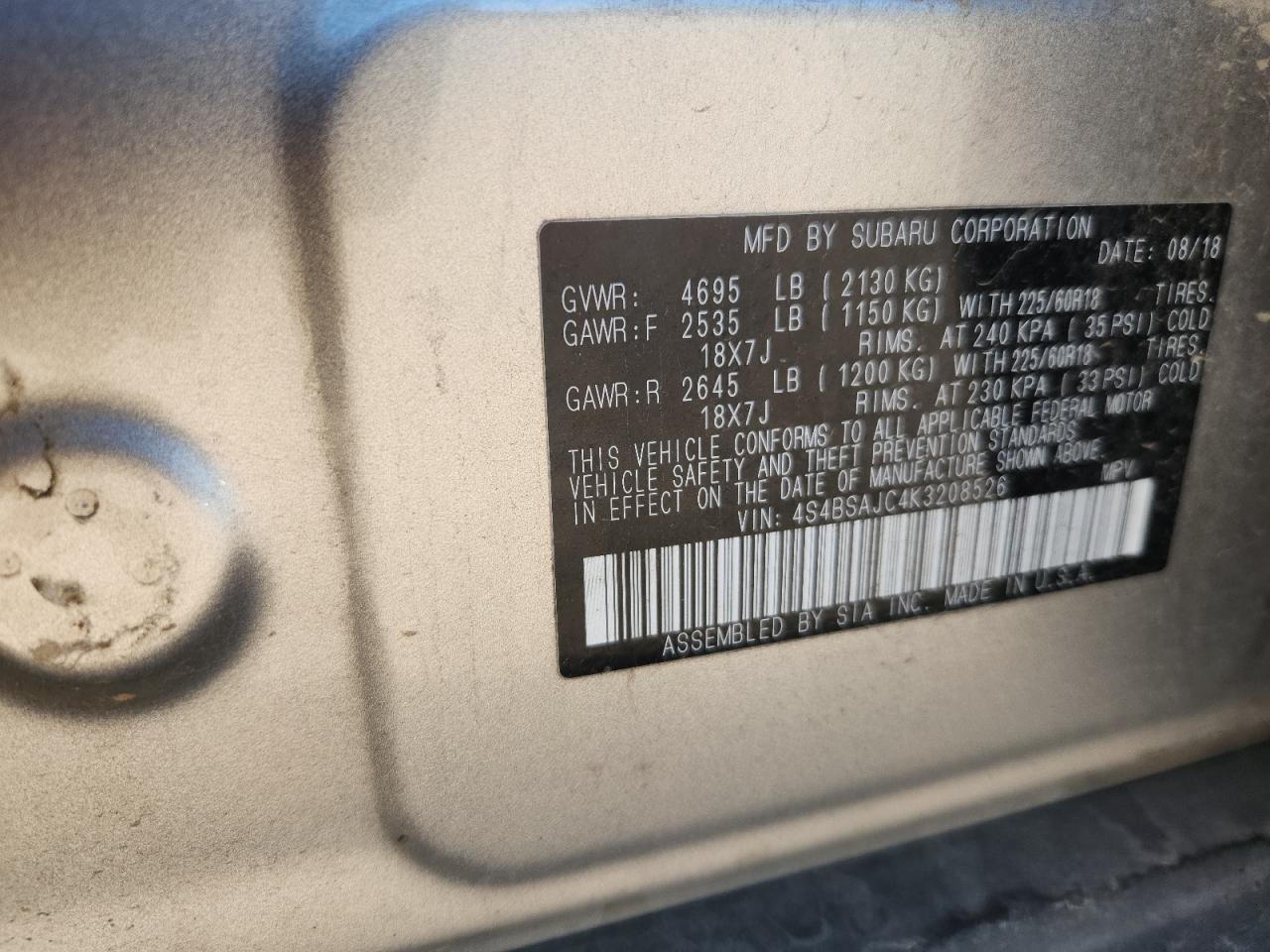 Цвет БежевыйЦилиндры 4Привод Полный приводVIN 4S4BSAJC4K3208526Состояние Заводится и едет (проверено)Повреждения Передняя или задняяДата аукциона 2025-10-08