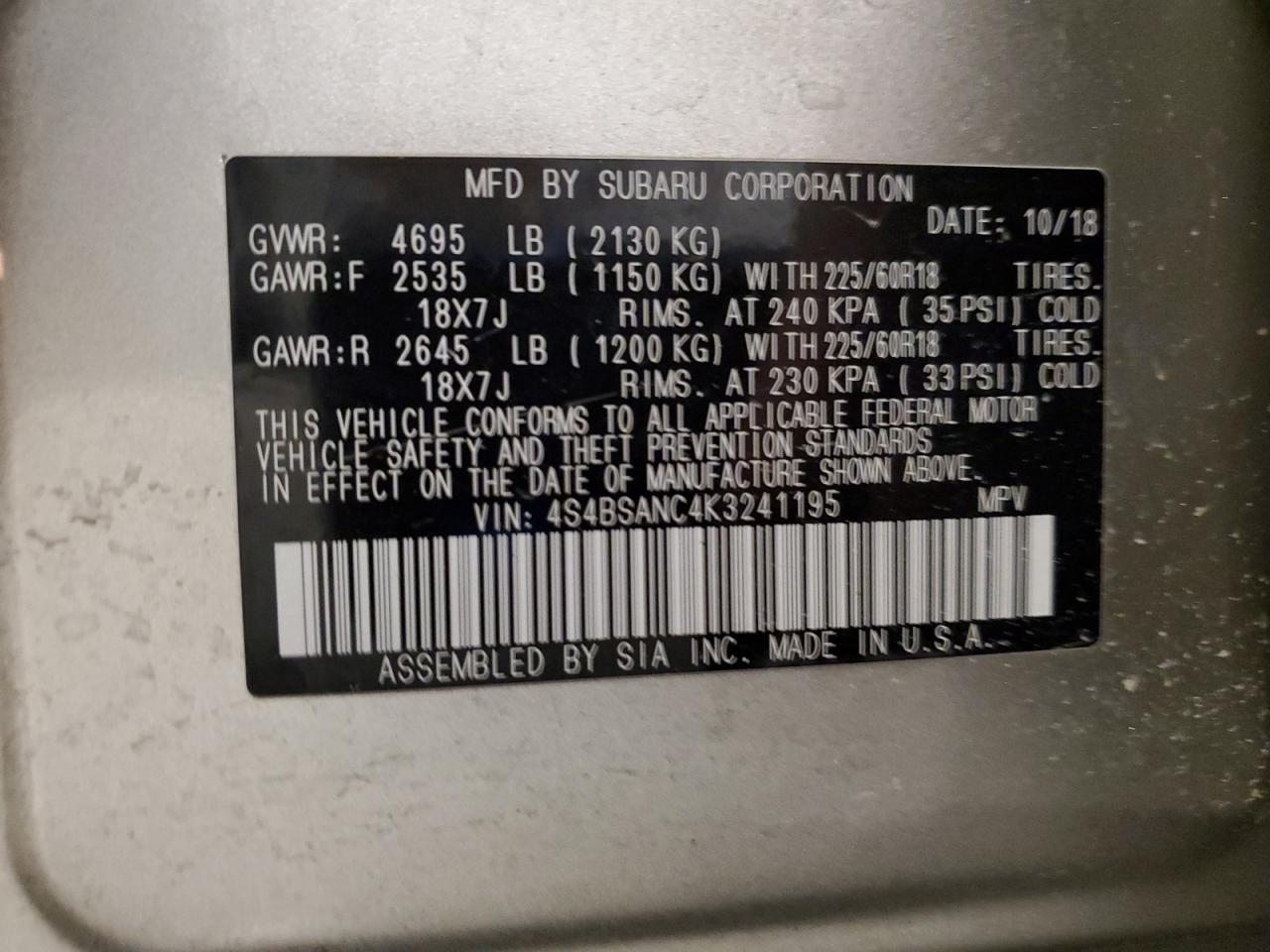 2019 SUBARU OUTBACK - 4S4BSANC4K3241195, цвет - Загар, 2.5, Бензин, Полный привод из США
