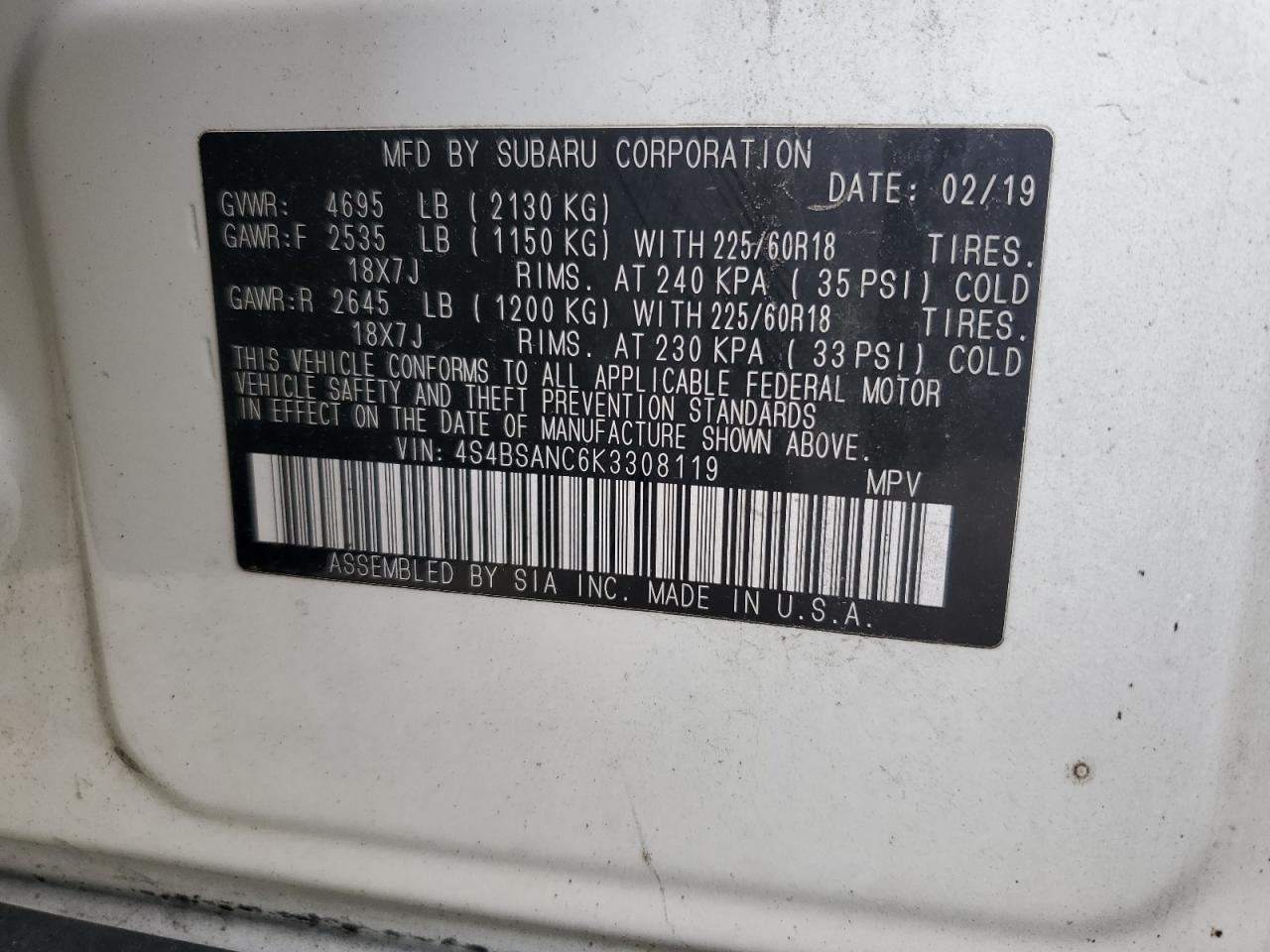 2019 SUBARU OUTBACK - 4S4BSANC6K3308119, цвет - Белый, 2.5, Бензин, Полный привод из США
