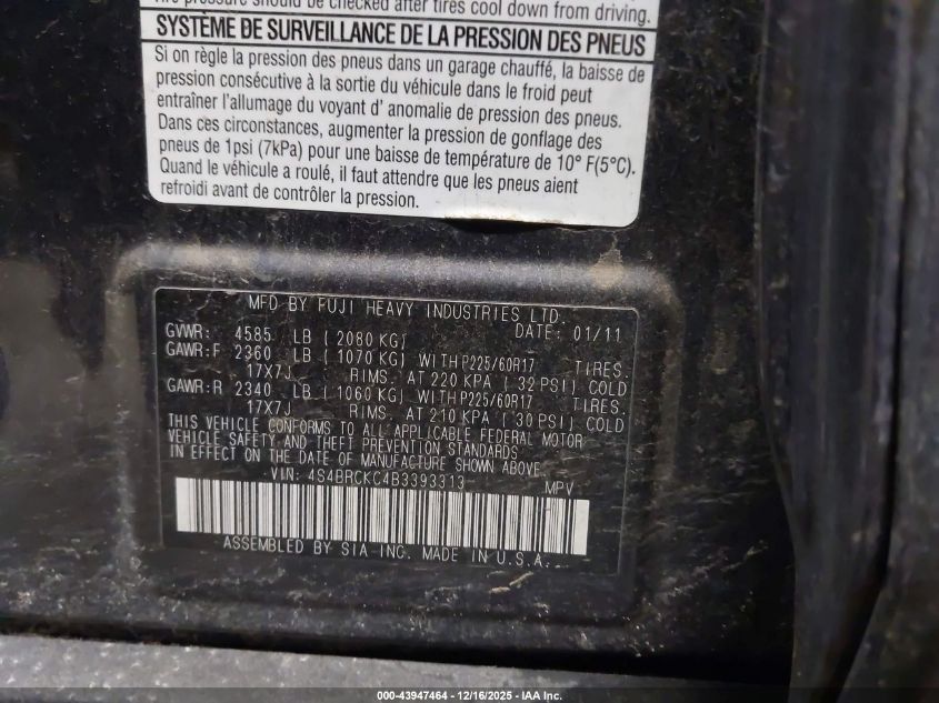 2011 SUBARU OUTBACK 2.5I LIMITED