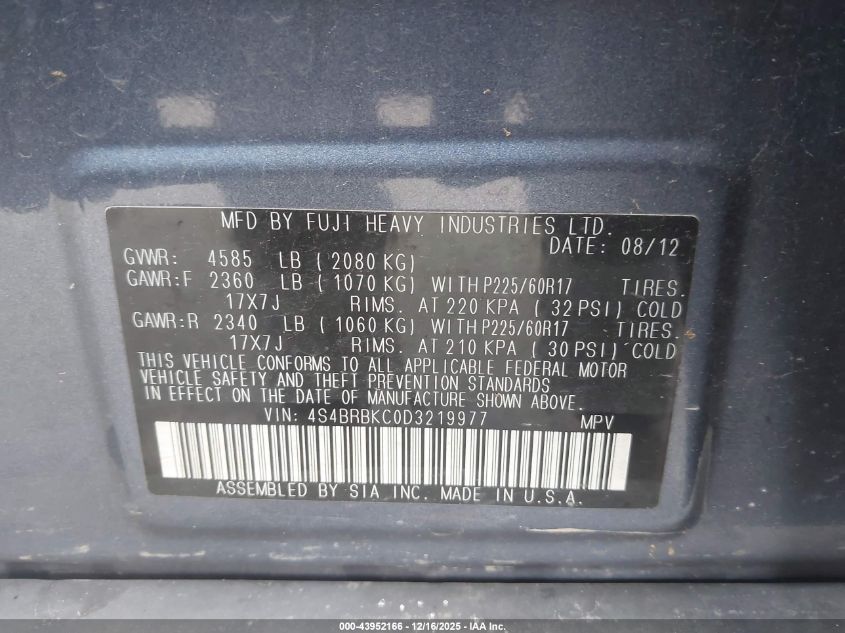 Цвет СинийЦилиндры 4Привод Полный приводVIN 4S4BRBKC0D3219977Состояние НеизвестноПовреждения Передняя или задняя