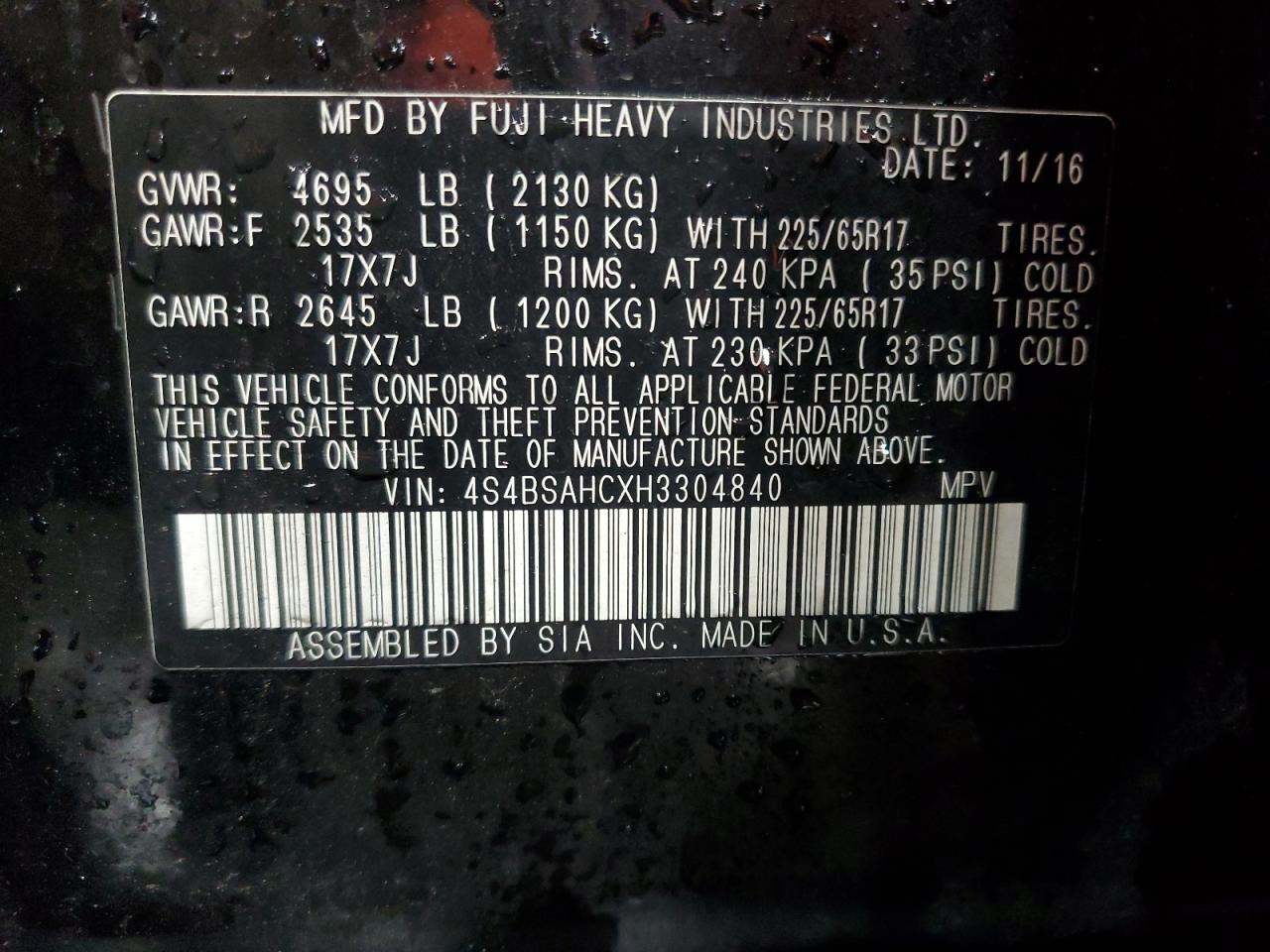 2017 SUBARU OUTBACK - 4S4BSAHCXH3304840, цвет - Черный, 2.5, Бензин, Полный привод из США