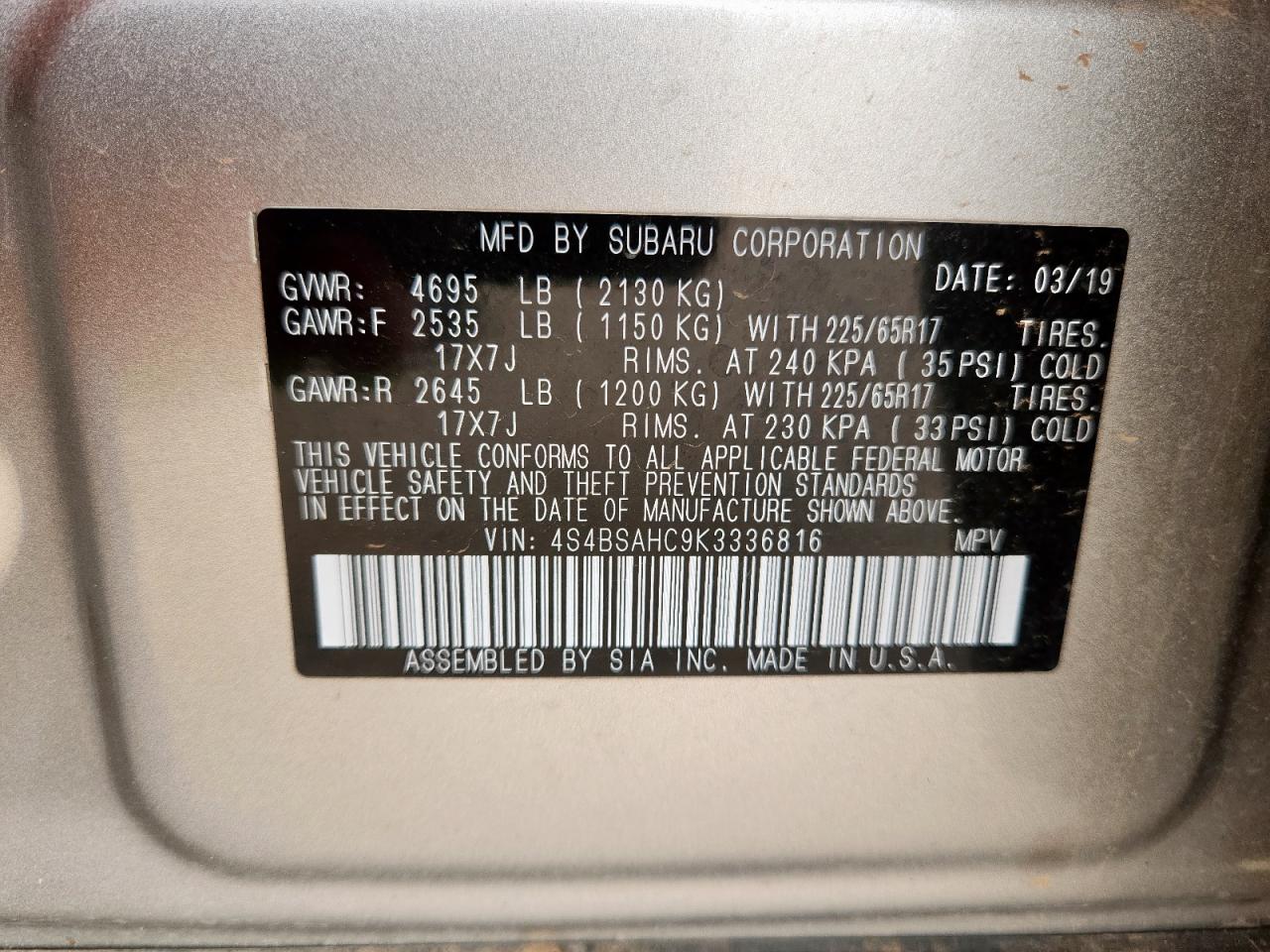 Цвет БежевыйЦилиндры 4Привод Полный приводVIN 4S4BSAHC9K3336816Состояние Заводится и едет (проверено)Дата аукциона 2025-10-08