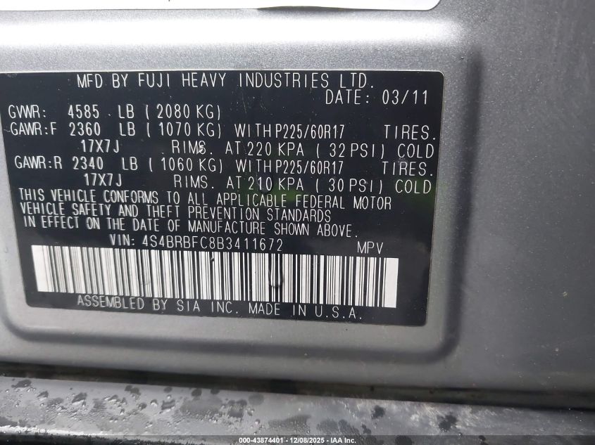 2011 SUBARU OUTBACK 2.5I LIMITED