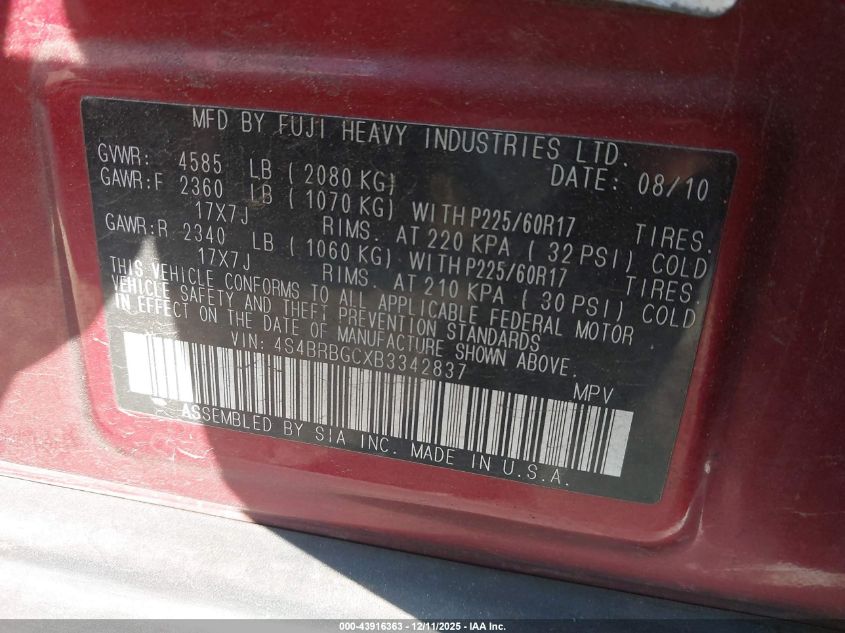 2011 SUBARU OUTBACK 2.5I LIMITED