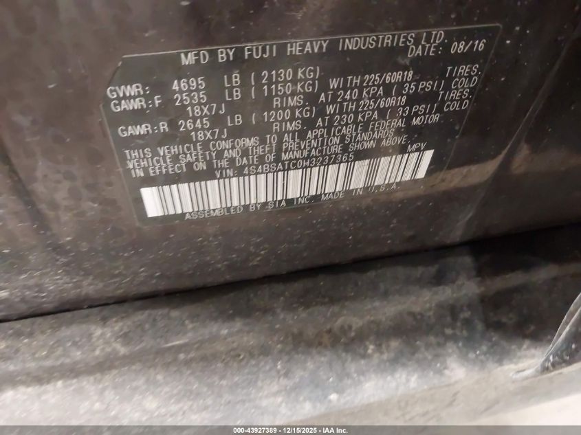 Цвет ФиолетовыйЦилиндры 4Привод Полный приводVIN 4S4BSATC0H3237365Состояние СтационарноПовреждения Левая сторона
