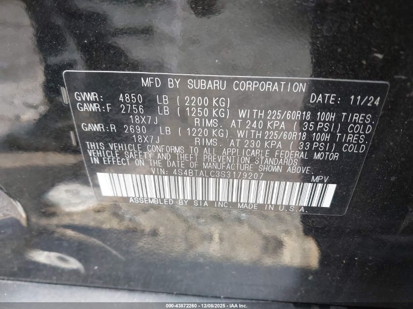 2025 SUBARU OUTBACK - 4S4BTALC3S3179207, цвет - Черный, 2.5, Бензин, Полный привод из США
