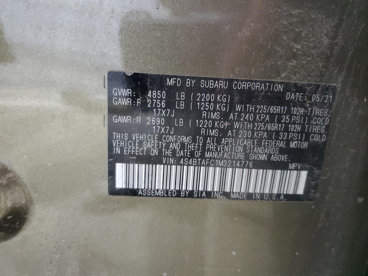 2021 SUBARU OUTBACK - 4S4BTAFC1M3214776, цвет - Зеленый, 2.5, Бензин, Полный привод из США