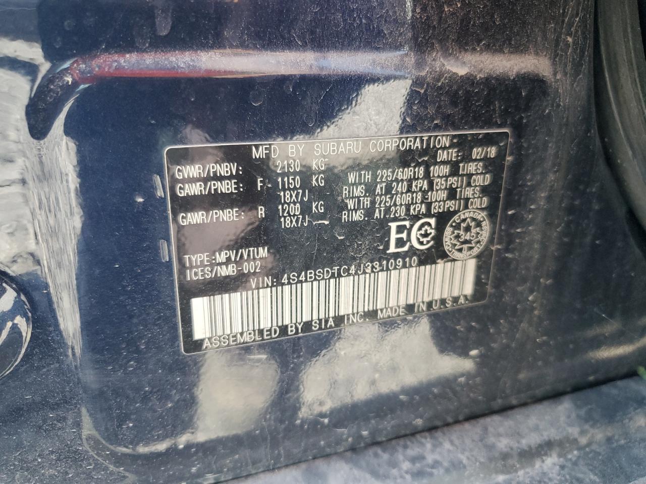 Цвет СинийЦилиндры 4Привод Полный приводVIN 4S4BSDTC4J3310910Состояние Заводится и едет (проверено)Повреждения Передняя или задняяДата аукциона 2025-10-08