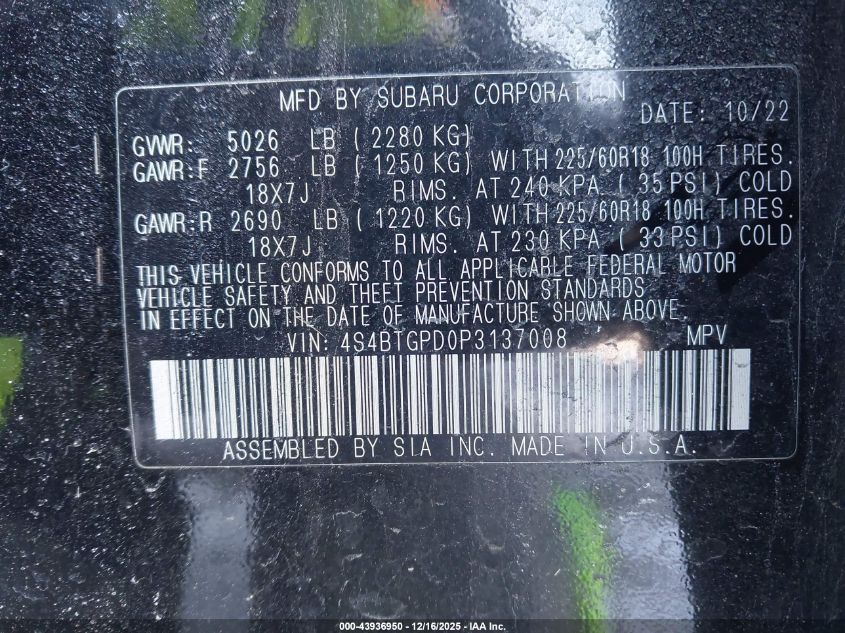Цвет ЧерныйЦилиндры 4Привод Полный приводVIN 4S4BTGPD0P3137008Состояние Заводится и едет (проверено)Повреждения Задняя