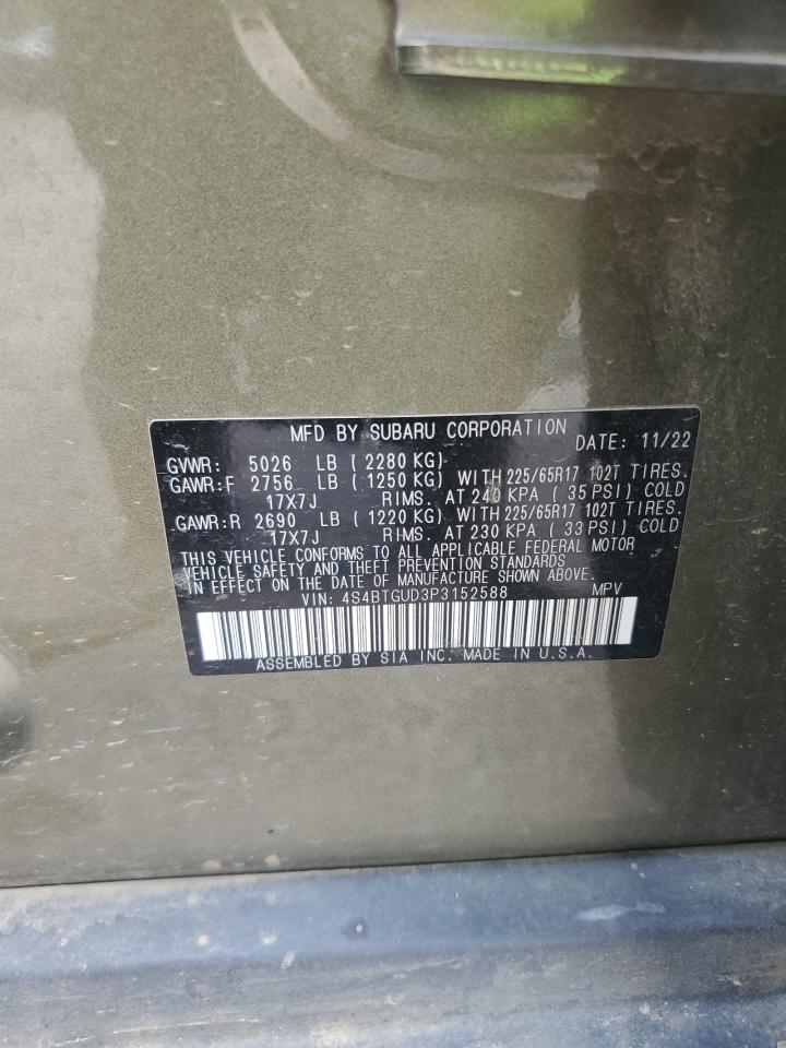 2023 SUBARU OUTBACK - 4S4BTGUD3P3152588, цвет - Зеленый, 2.4, Бензин, Полный привод из США