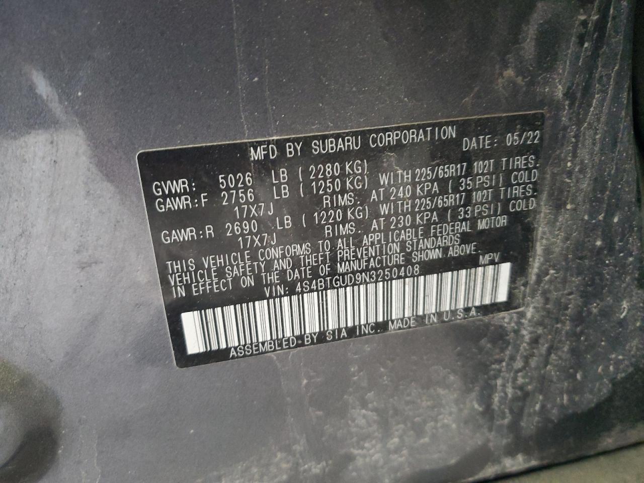 2022 SUBARU OUTBACK - 4S4BTGUD9N3250408, цвет - Серый, 2.4, Бензин, Полный привод из США