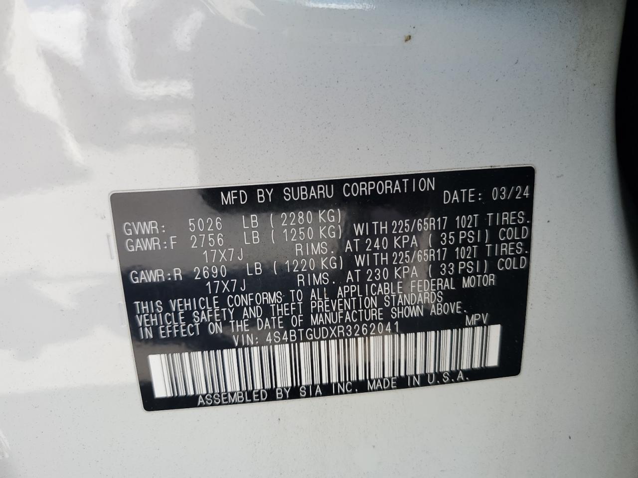 2024 SUBARU OUTBACK - 4S4BTGUDXR3262041, цвет - Белый, 2.4, Бензин, Полный привод из США