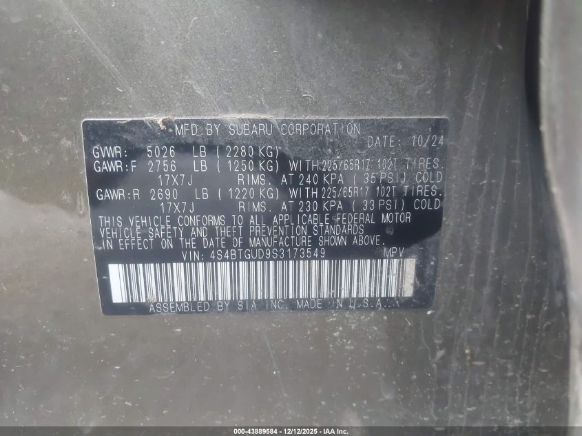 2025 SUBARU OUTBACK - 4S4BTGUD9S3173549, цвет - Зеленый, 2.4, Бензин, Полный привод из США