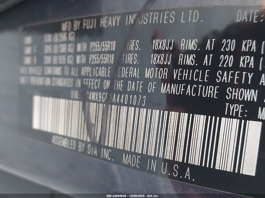 2010 SUBARU TRIBECA - 4S4WX9GD2A4401073, цвет - Черный, 3.6, Бензин, Полный привод из США