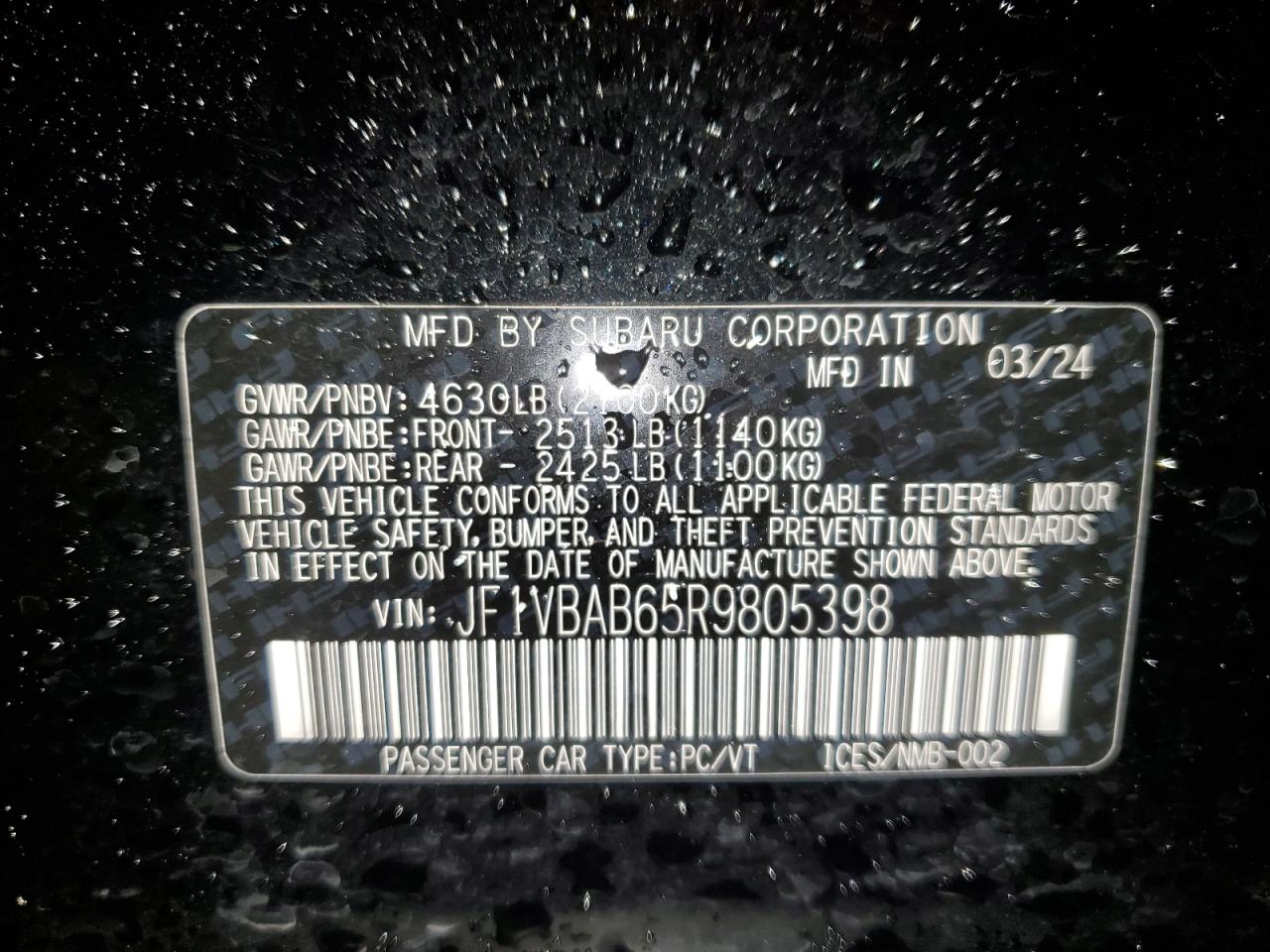 2024 SUBARU WRX - JF1VBAB65R9805398, цвет - Черный, 2.4, Бензин, Полный привод из США