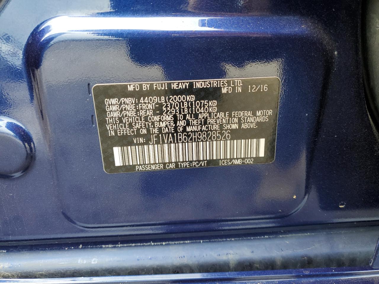 2017 SUBARU WRX - JF1VA1B62H9828526, цвет - Синий, 2.0, Бензин, Полный привод из США
