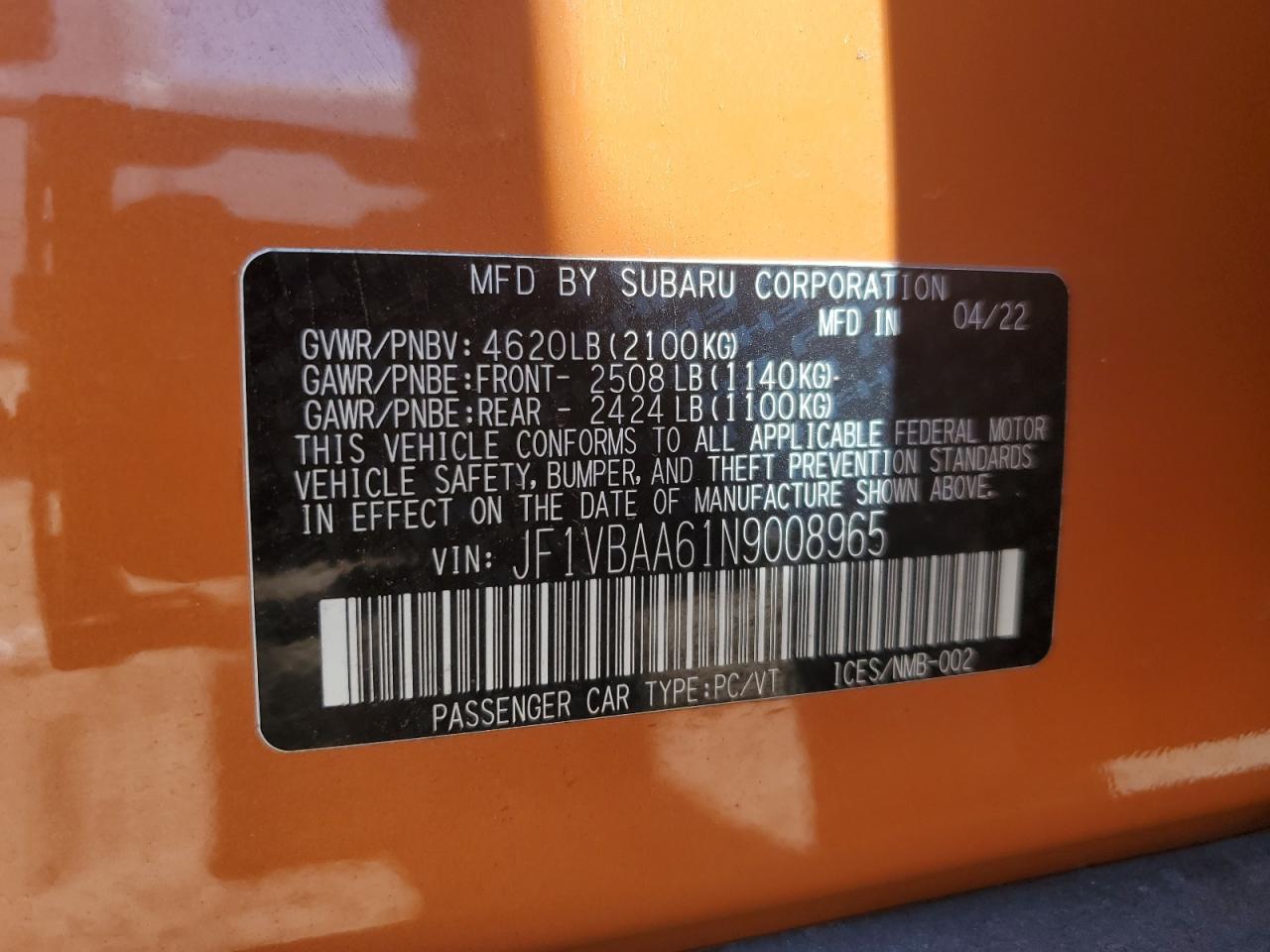 2022 SUBARU WRX - JF1VBAA61N9008965, цвет - Апельсиновый, 2.5, Бензин, Полный привод из США