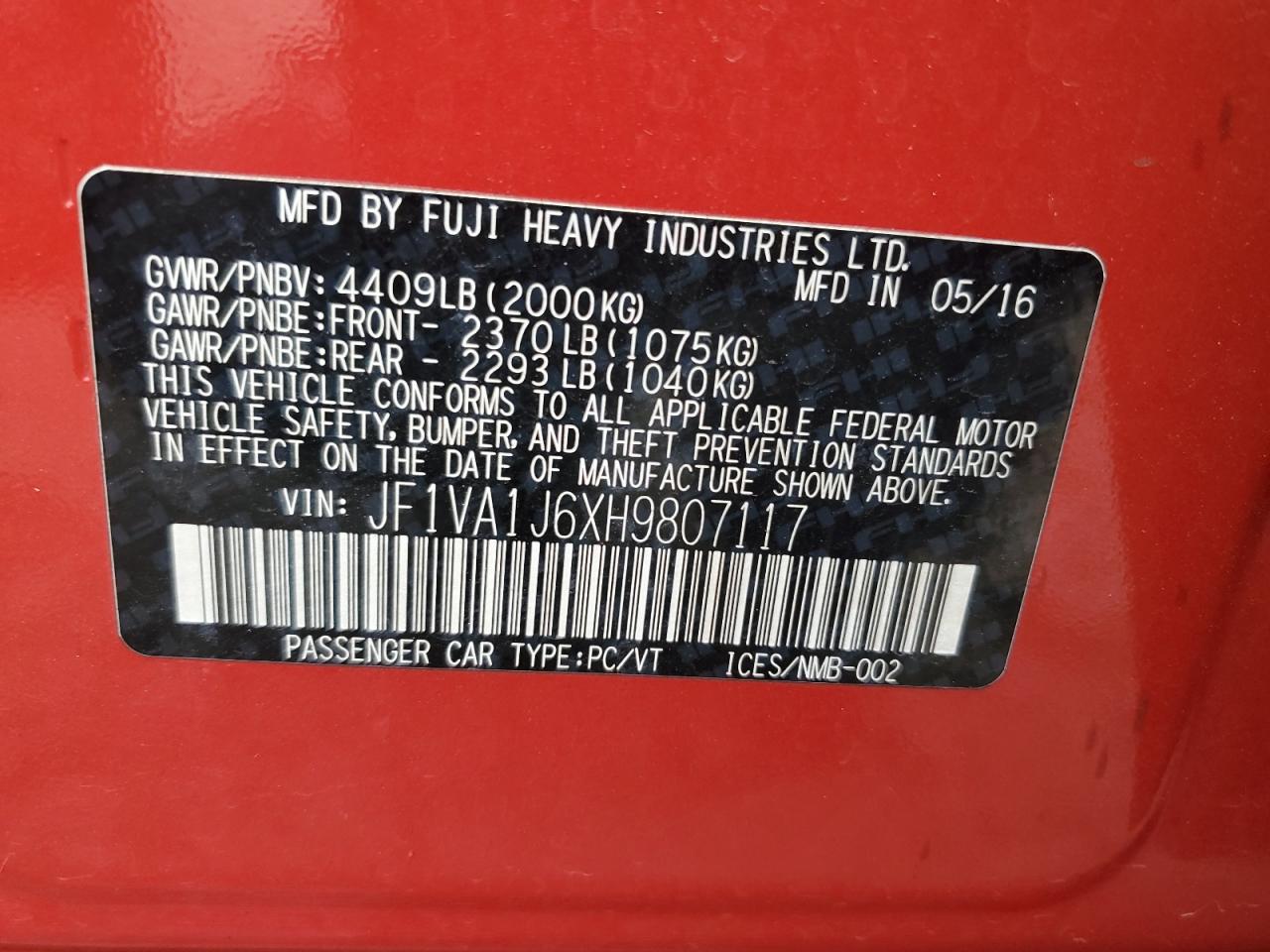 2017 SUBARU WRX - JF1VA1J6XH9807117, цвет - Красный, 2.0, Бензин, Полный привод из США