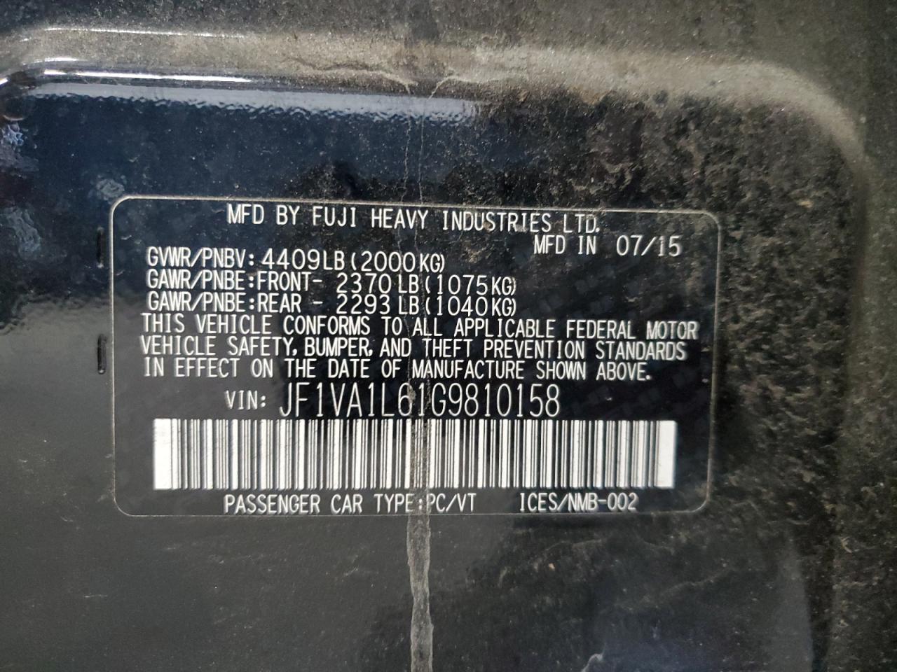 2016 SUBARU WRX - JF1VA1L61G9810158, цвет - Черный, 2.0, Бензин, Полный привод из США
