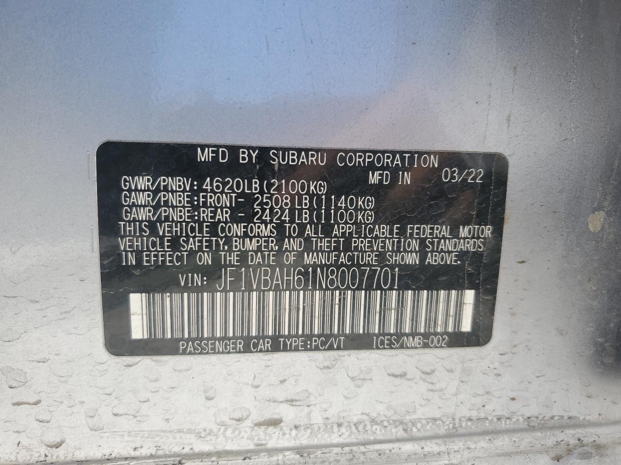 2022 SUBARU WRX - JF1VBAH61N8007701, цвет - Серебряный, 2.5, Бензин, Полный привод из США